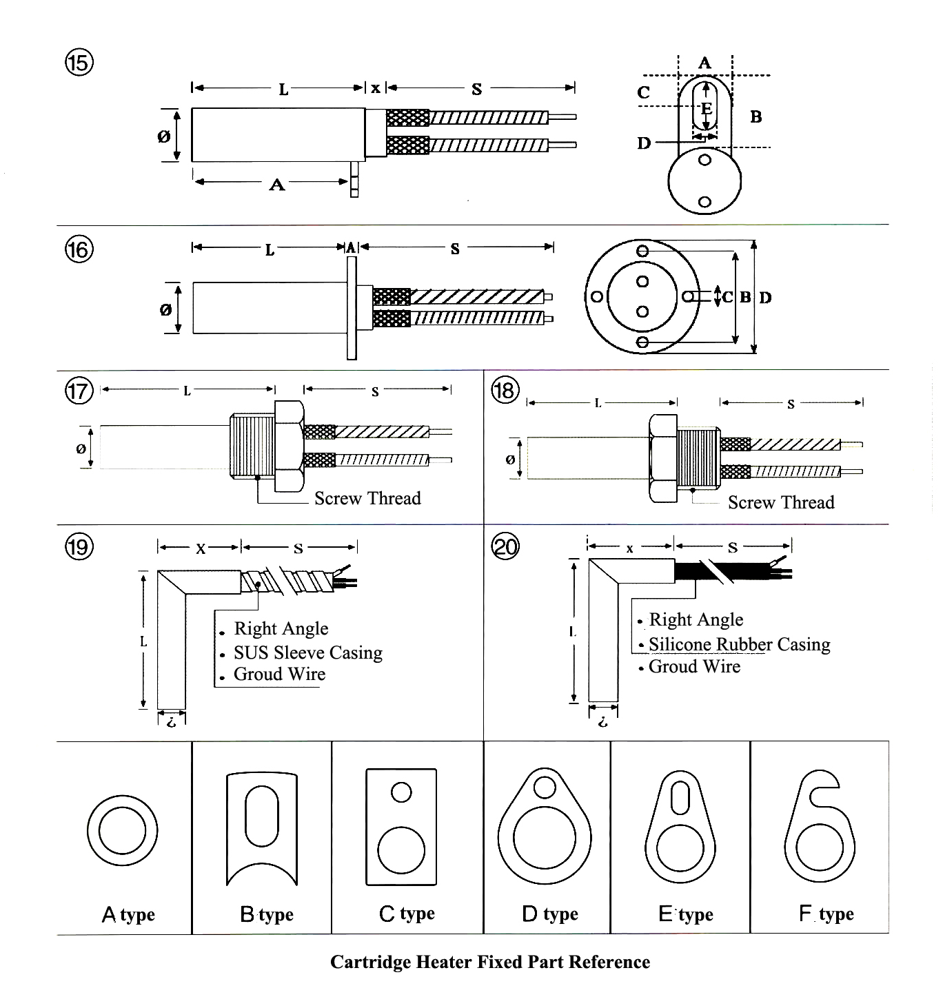 - All heaters have a cold length of about 7mm at bottom side and 15mm at terminal side. Hot length of heaters must be inside th hole where the heater is fitted.